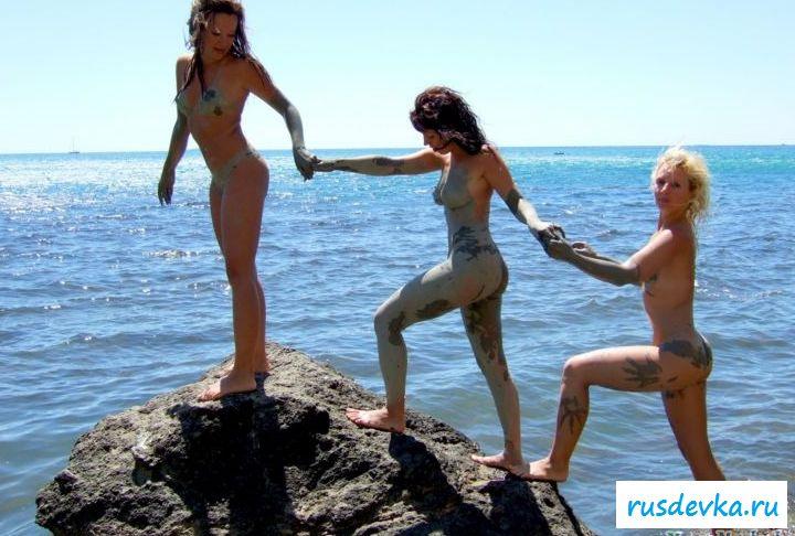 Три подружки давно отдыхают вместе, они всегда отправляются на те пляжи где можно быть раздетыми и нисколько не стесняясь окружающих. Девчата нудистки выглядит симпатично и сегодня они решили немножко развлечься. Они вывозятся в грязи обмазывая свои тела и заберутся в море, стоит признать такой вид немного заводит. Резвясь в воде девушки показывает свои вкусные прелести с разных сторон, их сиськи и попки будут мелькать на каждом фото, позволяю всем насладиться ими, как и крепкими жопками.
