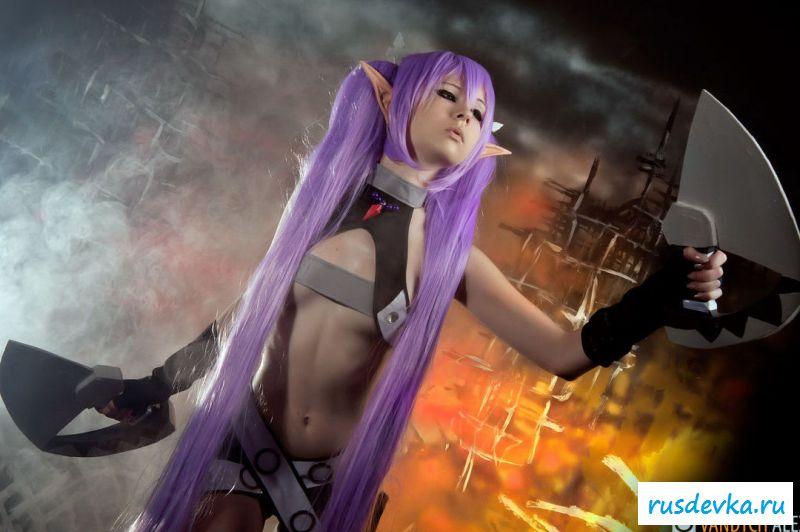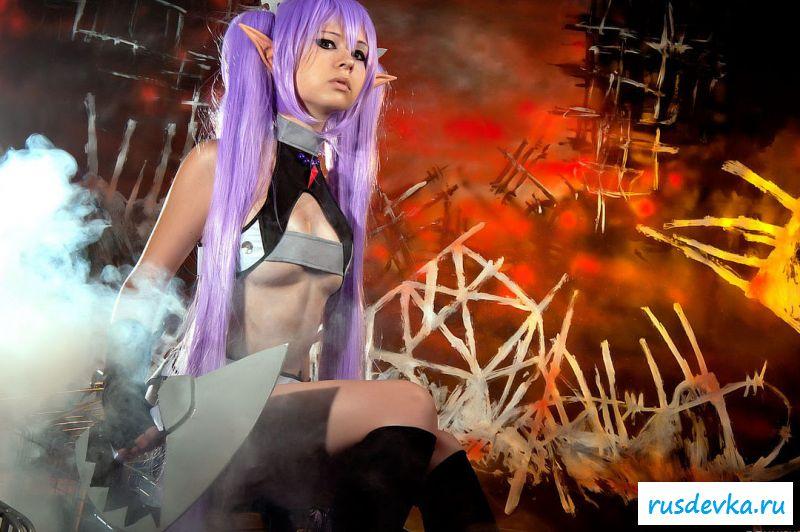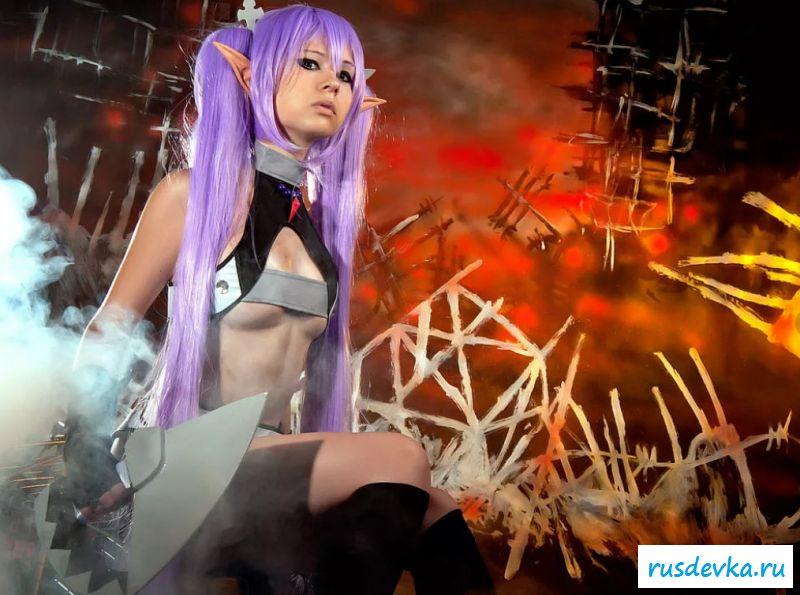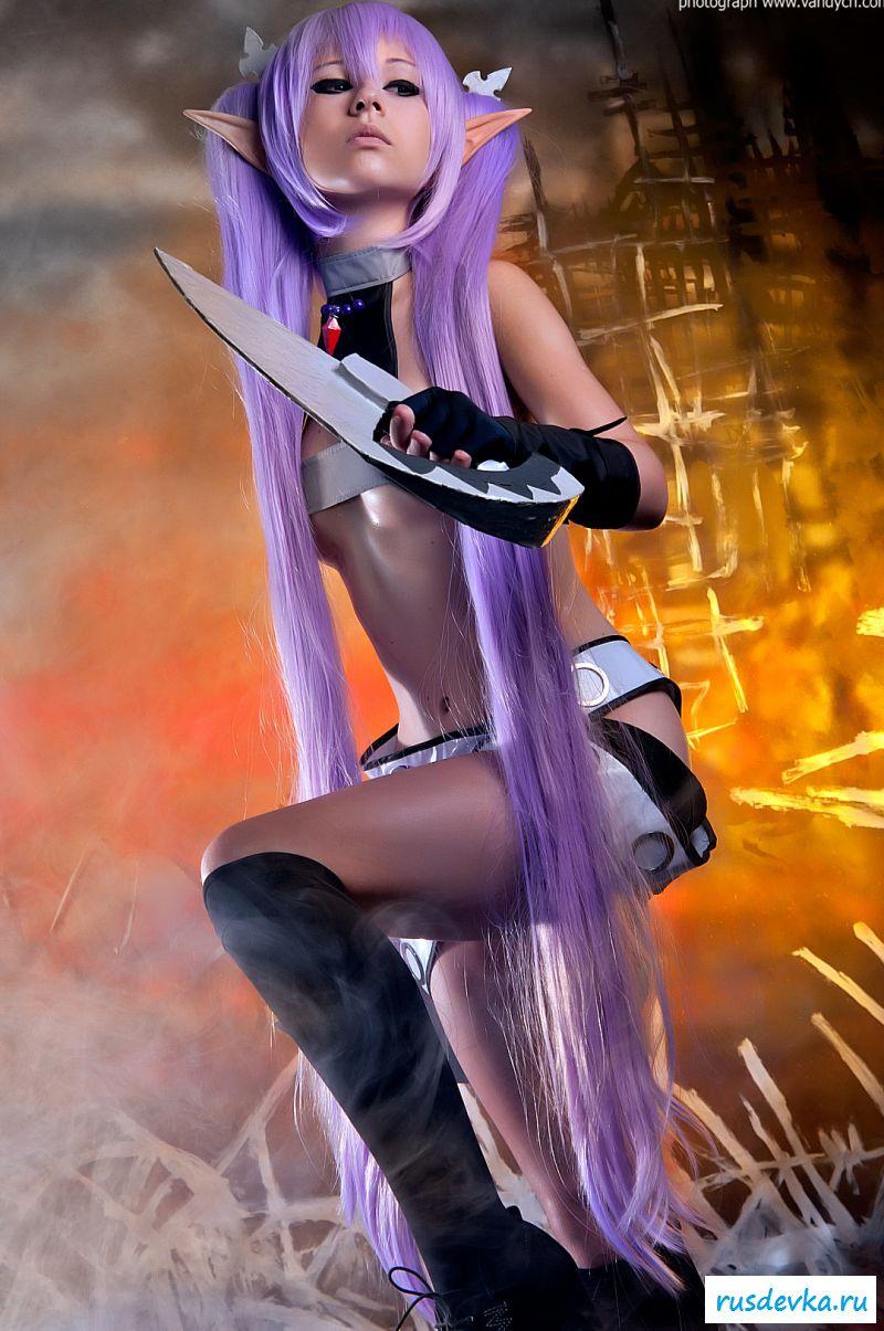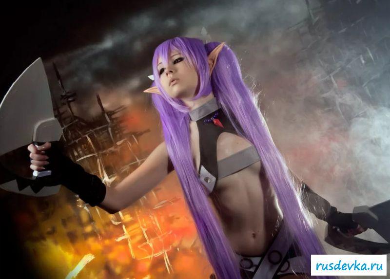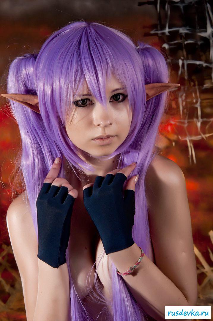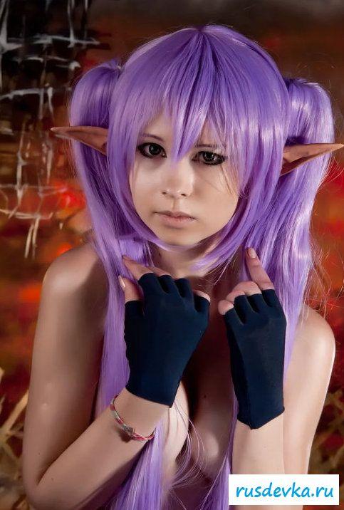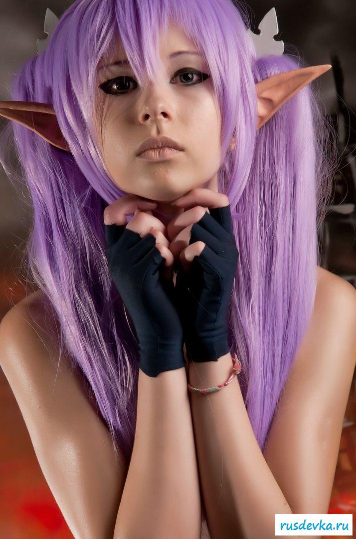 Нашумевшая фотосессия этой милой девки вызвала бурю эмоций и обсуждений в сети. Перед нами косплей худенькой девчонки принявшая образ эльфийки. Почему это поразило негодование от любителей Record Of Agarest War, до сих пор непонятно, возможно потому, что на фото представлена русская девушка решившийся на такой поступок. Лично я ничего не вижу здесь такого пред осудительного. Прикольные ушки и фиолетовые волосы героини добавляют интереса, а учитывая обнажённую небольшая грудь и выбритую киску доступно просто сносит крышу.