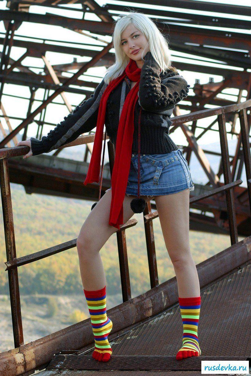Красочно одетая шлюха с бледной кожей и белыми волосами ярко улыбается своему нанимателю. Красивые глазки и спелые губки с интересом смотрят на парня в ожидании команды. Они залезли повыше, чтобы никто их не видел и парень приказал ей раздеться... Раздевайся шлюха!